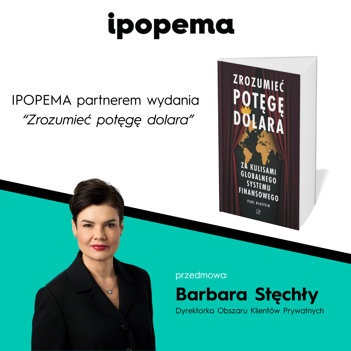 Tym bardziej jesteśmy dumni, że Barbara Stęchły, Dyrektorka Obszaru Klientów Prywatnych w IPOPEMA Securities, napisała przedmowę do tej publikacji, podkreślając znaczenie dolara nie tylko jako waluty, lecz także narzędzia wpływu gospodarczego i politycznego.